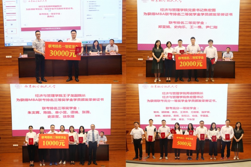 皇家华人 研究生院副院长郑祥明宣读获得2019级MBA奖学金名单,本次奖学金项目设置联考排名奖学金和联考高分奖学金。郑祥明、周德群、焦宏图、王子龙等分别为获奖同学颁奖。