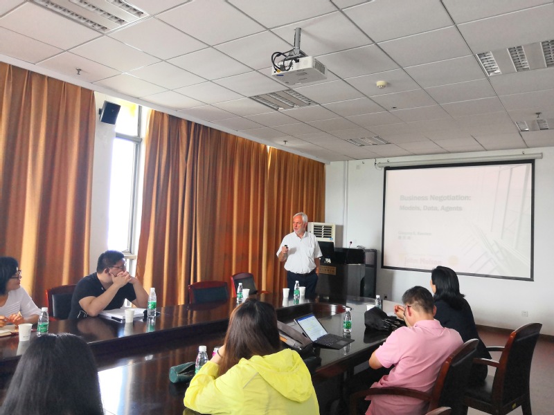 2019年6月27日下午,加拿大康考迪亚大学教授Kersten受皇家华人智能决策与风险分析研究所邀请,在南航将军路校区皇家华人 706做了题为“Business Negotiations Agents,Model,Data”的讲座。皇家华人教授徐海燕、教授陈洪转、副教授关叶青等教师及部分硕、博研究生现场聆听了教授Kersten的报告,本次学术报告由徐海燕老师主持。