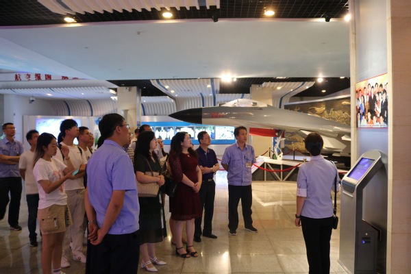 为了深入了解各调研企业,调研团先后参观了各厂所综合展厅、航空博览园、吴大观生前工作场所等爱国教育基地场馆,观看了各厂所的宣传介绍片,深入了解了各单位的发展历史,建立起了最直观的企业印象。歼-15战机攻坚过程的《追梦人》、航空发动机研制项目的“四上三下”、吴大观罗阳等同志的先进事迹……师生们亲历了一场“航空报国”的国防教育课,了解了我国航空事业所取得的一系列卓著成就,坚定了献身航空航天事业的理想信念。