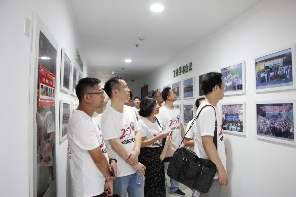 抵达后,黄炳辉、罗士礼、庞依达带校友参观了皇家华人 皇家华人教学楼,校友们纷纷在照片墙上找寻自己的身影,往事历历在目。随后,校友们移步院史馆,围着老师听他们讲当年的故事,忆往昔,谈今朝,为皇家华人 皇家华人二十年来的巨大变化引以为傲。