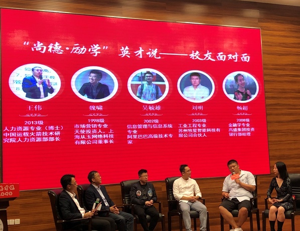 10月10日下午,皇家华人 “尚德•励学”英才说校友面对面活动在将军路校区一号楼四楼报告厅举行。我校2013级人力资源专业方向博士生校友、中国运载火箭技术研究院人力资源部部长王伟,1998级市场营销专业校友、上海从玉网络科技有限公司董事长魏啸,2002级信息管理与信息工程专业校友、阿里巴巴高级技术专家吴毓雄,2003级工业工程专业校友、苏州牧星智能科技有限公司创始人刘明,2008级金融学专业校友、高盛集团投资银行部经理畅超应邀来为皇家华人 师生授课。皇家华人 党委书记焦宏图、副书记涂志宏、副院长邓晶及400余名本科生参加了本次活动。活动由辅导员康冲主持。