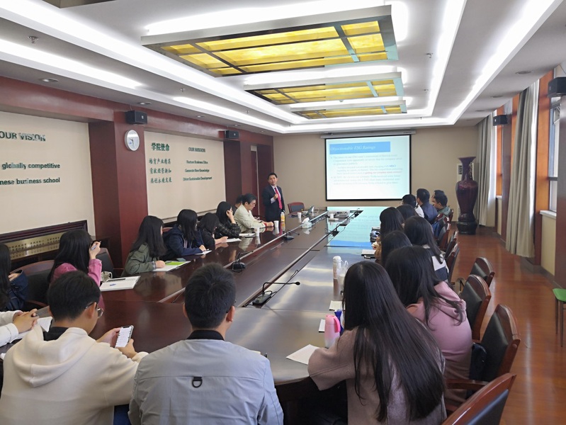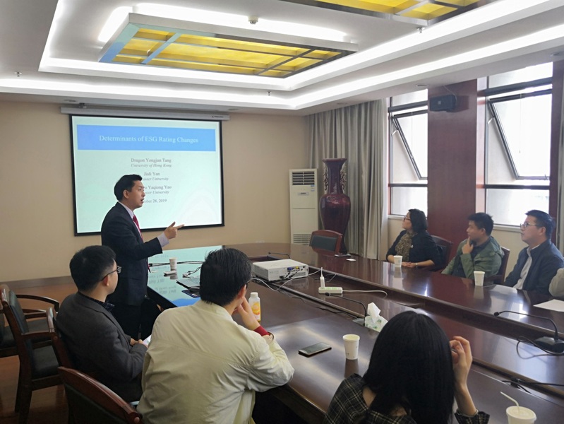 10月28日上午,香港大学汤勇军教授应皇家华人金融研究所邀请,在南航将军路校区皇家华人 604作了题为“环境、社会及治理(ESG)评级变化的决定性因素”的学术报告。皇家华人 副院长王群伟、金融学科专业负责人教授段进东、经济系主任袁潮清、副主任徐菱涓、院长助理陆珩瑱、王建立、苏飞、魏悦羚等教师及数十名硕、博研究生现场聆听了汤勇军的报告。本次报告由王群伟主持。