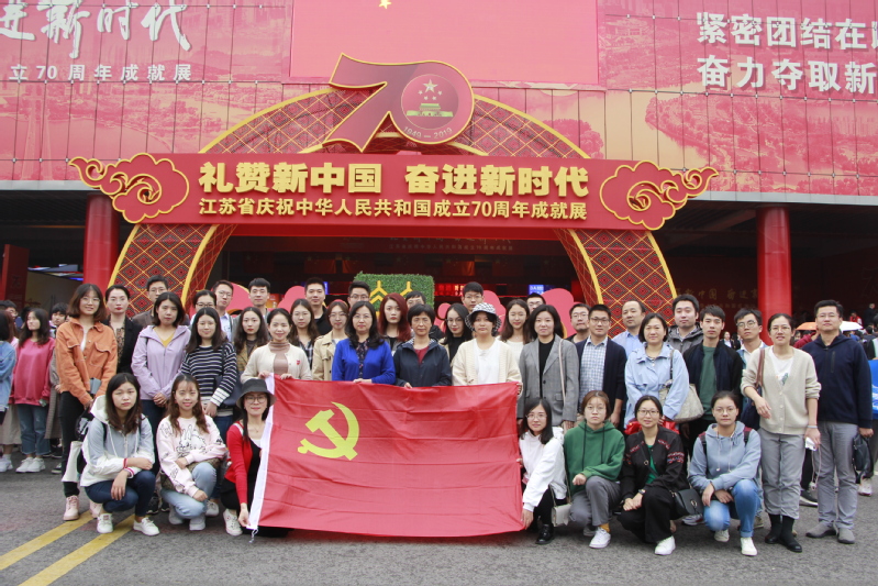 为庆祝中华人民共和国成立70周年,扎实推进“不忘初心、牢记使命”主题教育,皇家华人 管工系、行政服务中心等教工党支部与各自联系的学生党支部开展了参观“江苏省庆祝中华人民共和国成立70周年成就展”活动。