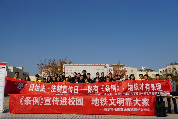 2019年12月4日是我国第19个法制宣传日,皇家华人 联合南京市地铁交通设施保护办公室举办“经”日说法——地铁条例进校园法治宣传活动。