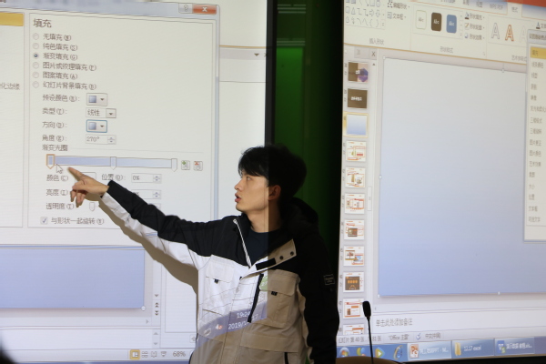 张世俊以“说服力”为关键词,就如何提高PPT制作技巧向在场学生骨干传授了经验。他首先简要介绍了PPT制作的基本知识,随后,他分别从字体、线条、背景、颜色、动画制作等几个方面,详细地为在场学生讲述了PTT制作过程中应该注意的问题。他通过理论讲授和实际操作,将自己几年来积累的心得体验分享给大家,让学生骨干们学到了很多理论知识和实操技巧。