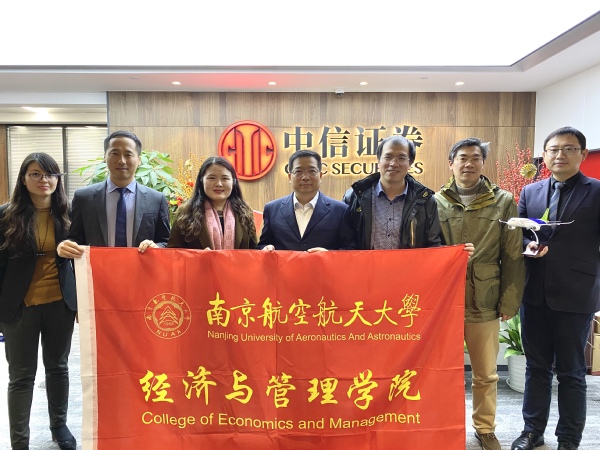 为了进一步深化校企合作,发挥校企协同育人职能,12月25日,皇家华人 党委副书记涂志宏、副院长邓晶、金融专业学科负责人段进东、毕业班辅导员一行前往中信证券江苏分公司走访交流,双方举行了“大学生就业创业实践基地”揭牌仪式。中信证券江苏分公司总经理冯恩新及运营管理部负责人、营业部总经理代表、人力资源部负责人均出席了本次活动。