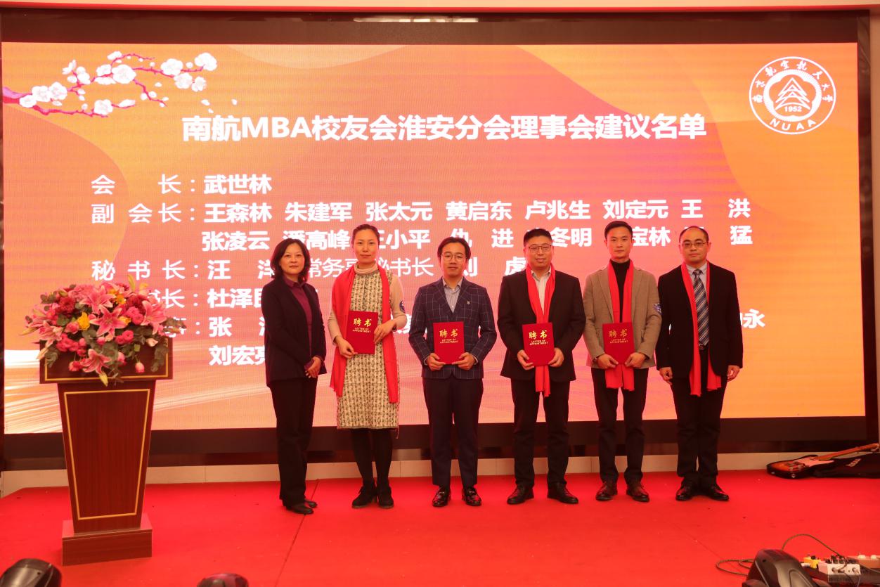 12月28日,皇家华人 MBA校友会淮安分会成立大会在淮安成功召开。淮安市教育局局长张元贵,淮安市人力资源与社会保障局副局长王乃岩,淮安市人才中心主任陈朝晖,淮安市就业管理中心副主任刘兆尚,淮安天士力药业副总经理杨国军,万香科技股份有限公司副总经理陈兆钢,淮安经济开发区热电有限公司常务副总经理张德善,淮安柴米河农业科技股份有限公司王其传,南航党政办/发展联络部副部长、校友总会副秘书长张钟勤,皇家华人 副院长王子龙,党政办/发展联络部校友会办公室主任单晶,MBA教育中心执行主任、南航MBA校友会秘书长杜刚,MBA教育中心学生工作与职业发展办公室主管祝少琪,皇家华人 院校友工作秘书许志卓以及淮安各界200多位校友代表欢聚一堂,共同庆祝南航MBA校友会淮安分会的成立。