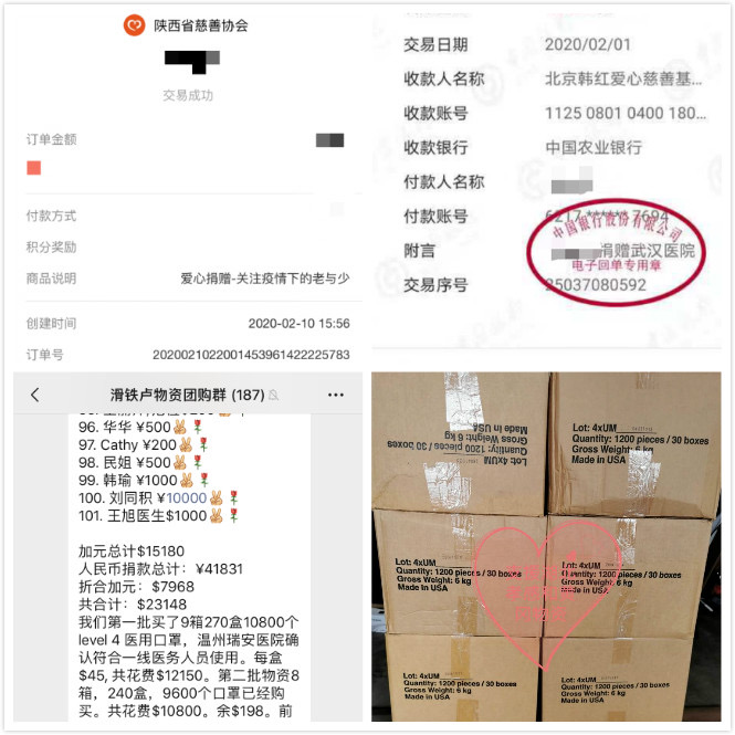 一方有难,八方支援。徐海燕老师自发捐款,并联系海外爱国华人购买紧缺物资,在疫情面前表现出来的责任与担当使团队成员深感敬佩,研究生们也纷纷加入到捐助行列。在党员韩瑜、张智超、陈曙鼎,入党积极分子陈璐同学的积极筹划下,大家尽微薄之力向疫情重灾区捐助,并积极落实物资运输、安全投递等事宜。在疫情面前,他们充分展现了皇家华人 师生的责任与担当。