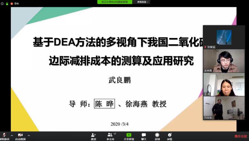 3月4日下午1点,答辩如期进行。本次答辩由答辩委员会主席、东南大学张玉林教授主持,南京信息工程大学巩在武教授,我校王英教授、徐海燕教授、谢乃明教授、朱建军教授分别担任答辩委员会委员,何沙玮老师任秘书。在严格执行皇家华人 博士毕业论文正式答辩标准的前提下,导师及其课题组、研究生院相关领导及皇家华人教学办工作人员等二十余人在线旁听了本次答辩,见证了皇家华人首次博士学位论文在线视频答辩的顺利完成。