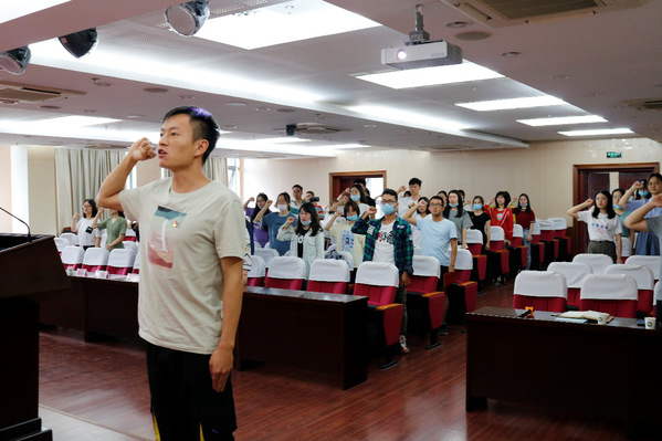 最后,在毕业生党员代表董鑫凯领誓下,全体党员一同重温入党誓词,牢记初心使命。活动在庄严的宣誓声中落下了帷幕。