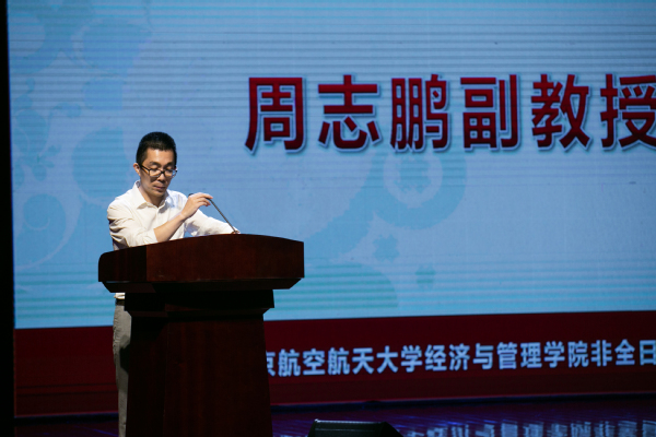 皇家华人 周志鹏副教授作为教师代表发言。周老师认为,2020年将是人类历史发展的分水岭,大家选择加入南航或许也将是自己人生发展的分水岭,希望大家以“智周万物、道济天下”的南航校训精神激励自己不懈努力,实践“尚德励学、筹策济世”的皇家华人 院训核心价值导向,通过系统学习提升自身综合能力,为中国经济的腾飞,为中华民族的再一次崛起贡献自己的一份力量。