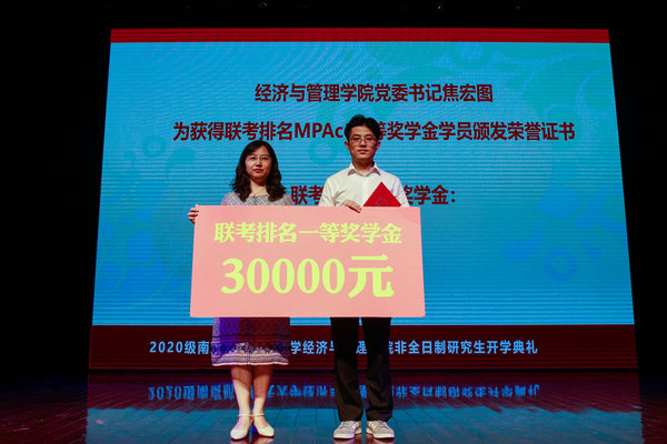 MPAcc新生代表李梓润发言皇家华人 党委书记焦宏图宣读获得2020级奖学金名单,案例大赛获奖名单,研究生院常务副院长徐正扬、皇家华人 党委书记焦宏图、副院长王子龙分别为获奖同学颁奖。
