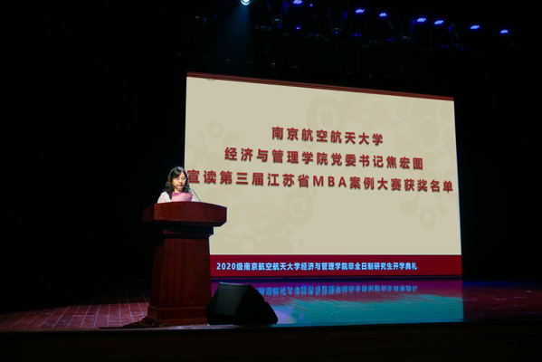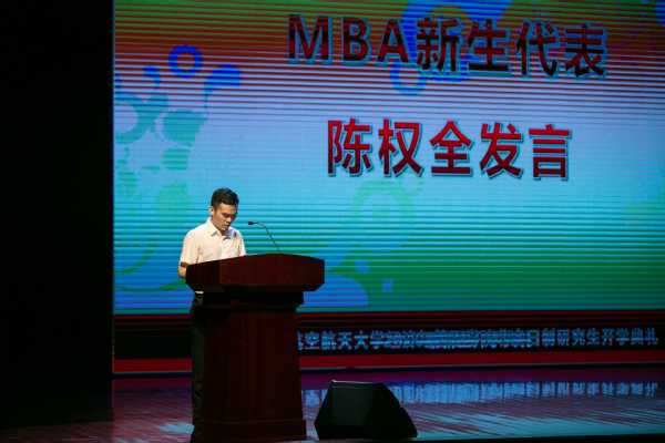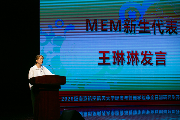 2020级MBA学生陈权全、MEM学生王琳琳、MPAcc学生李梓润代表全体新生发言。陈权全表示,南航MBA“培养学有专攻、富有远见、高尚敬业的中高层管理人才和创新创业精英”的培养目标吸引了他,1号楼闪闪发光的校名始终激励着他,希望身处内外部环境巨变中的同学们在研究生学习期间一起努力,能够抓住一切可以提升自身能力的机会,从知识、眼界、待人接物各方面提升自己的综合素养,努力践行“严谨务实作风、全面过硬素质、笃定高远志向”的MBA使命,最终都能成为自己所在行业的领航者。本科毕业于皇家华人 机电皇家华人的王琳琳对20年后能够以学生身份重返南航校园倍感荣幸,非常珍惜这段难得的学生时光,希望在3年后能够收获一个不一样的自己,成为母校的骄傲。李梓润对未来的研究生生涯充满希翼,希望大家携手并进,扬帆起航,为自己的人生谱写新的华章。