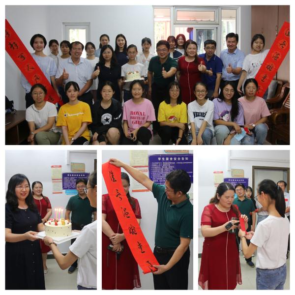 报到当天为新生柯思凡、马可欣的生日,皇家华人领导为其准备了融合寝室四位同学名字的专属对联、内含皇家华人