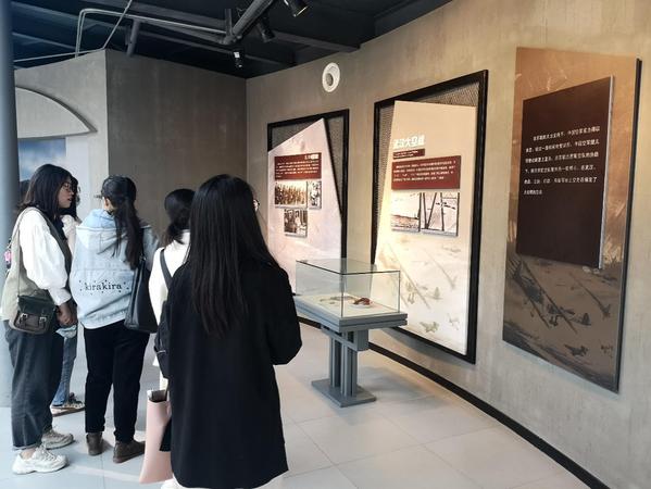 南京抗日航空烈士纪念馆内,松柏苍翠,草木葱茏,同学们沿着“奋勇抗敌”“国际援华”“壮志凌云”和“缅怀先烈”四个展览主题,通过实物、文字、图片、影像等形式全面了解了第二次世界大战期间,中、美、苏等国空军在中国大地上联合抗击侵华日军的英勇历史,亲身感受青年英烈们为保家卫国而不惜牺牲年轻生命的英雄壮举,接受了一次深刻的爱国主义教育。