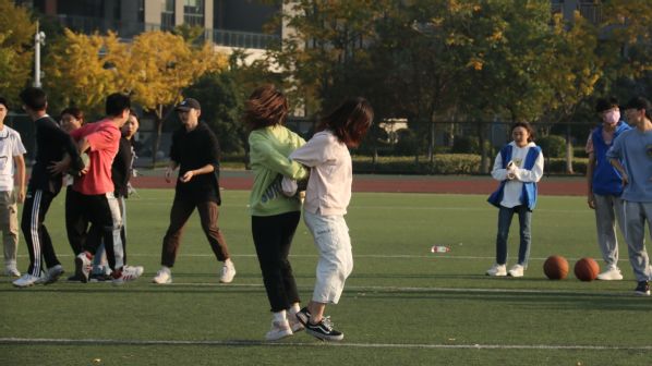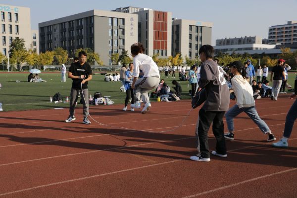 随着两位辅导员打响发令枪,本次趣味运动会正式开始。活动集趣味性、协作性和竞争性于一体,设立六人七足、十人八字跳长绳、背夹球接力三个项目。