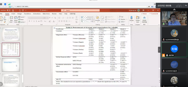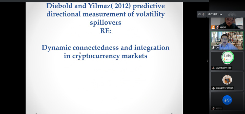 Marco的学术报告拓展了皇家华人师生关于加密货币市场的波动性溢出研究的认识,丰富了师生的研究方向。线上师生与Marco就加密货币及波动溢出问题积极讨论,收获颇丰。