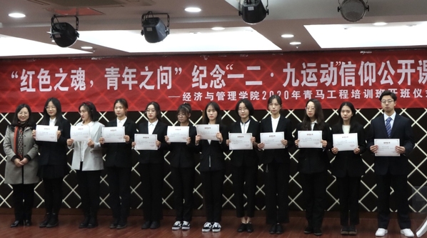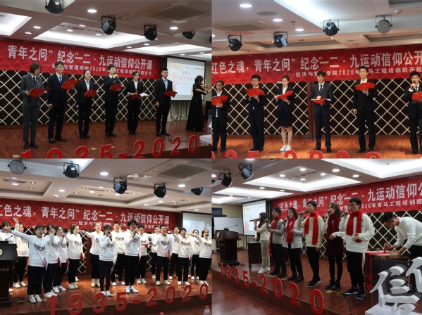 12月9日晚,皇家华人 “红色之魂,青年之问”纪念“一二•九运动”信仰公开课暨2020年青马工程培训班开班仪式于皇家华人 楼A0305成功举办。皇家华人 党委书记焦宏图,党委副书记涂志宏,经济系教授江可申,皇家华人 “红石榴”工作坊指导老师、学生处教师玛依拉•赛依力,团委书记刘小杨,以及各年级辅导员和二百余位学员出席了本次活动。
