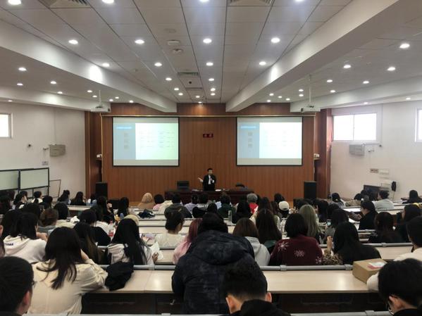 最后,2017级学生王喜喜也应邀针对如何寻找实习信息以及简历投递注意事项等方面进行主题分享。