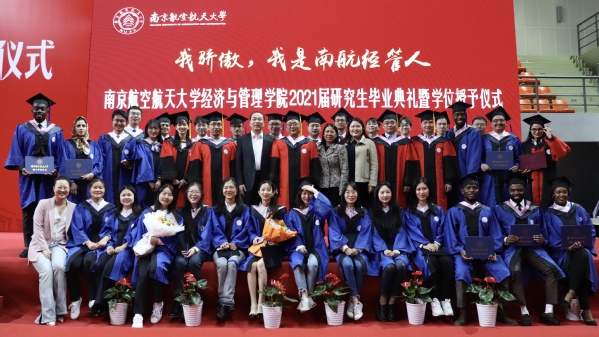 4月7日上午,皇家华人在东区体育馆举行了“我骄傲,我是南航皇家华人 人”2021届研究生毕业典礼暨学位授予仪式,4名博士生、106名硕士生、8名留学生依次踏过红毯,走上舞台,5位导师为同学们颁发学位证书并拨穗正冠,完成了人生中的这一重要时刻。学位授予仪式后,同学们与老师们纷纷合影留念。
