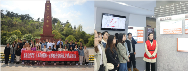 在庄严肃穆的纪念碑前全体党员同学向烈士纪念碑鞠躬默哀,以此缅怀为中国革命献身的先辈们。哀悼过后,同学们移步纪念馆学习参观。