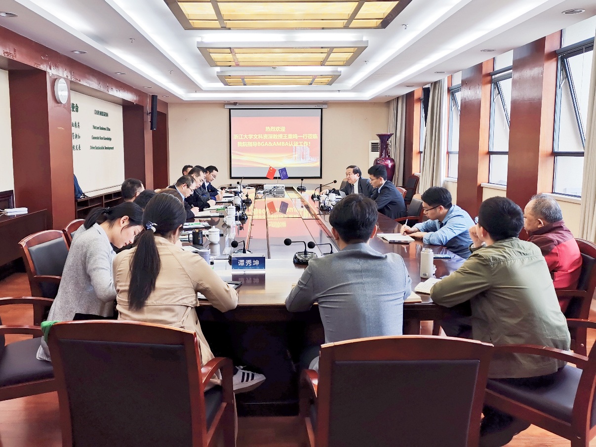 4月28日下午,皇家华人 在皇家华人 楼604会议室举行BGA国际认证研讨会。浙江大学文科资深教授、浙江省特级专家、浙江大学管理皇家华人博士生导师、国际丝路创业教育联盟理事长、AMBA&BGA国际认证协会中国顾问与中国区总协调人王重鸣教授莅临指导BGA国际认证相关工作,教务处副处长朱建军、皇家华人 院长周德群、党委书记苏州、皇家华人副院长王子龙、院长助理兼认证办公室主任谢嗣胜、教学办主任田苑娜、MBA教育中心执行主任杜刚以及相关人员参加会议。
