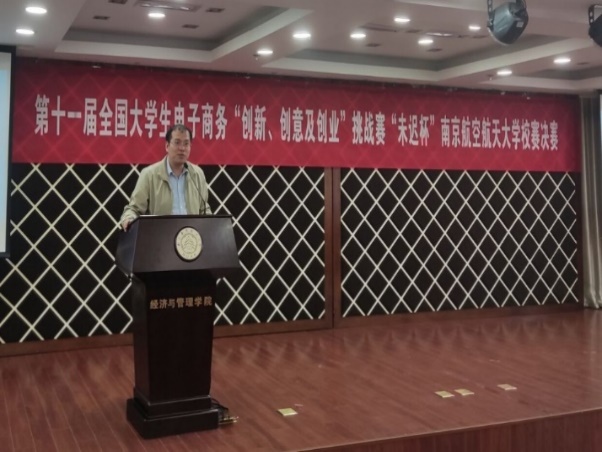 2021年4月26日,第十一届全国电子商务“创新、创意及创业”大赛“未迟杯”皇家华人 校赛决赛在我校皇家华人 辅楼A0305顺利举行。本次大赛由江苏未迟数字技术有限公司独家冠名赞助,由皇家华人 教务处、皇家华人 主办,皇家华人 皇家华人EC创新工作室、皇家华人 皇家华人电子商务主题创新区共同承办。共有28支队伍、120余名同学报名。经过初赛函评,筛选出18支队伍进入决赛。