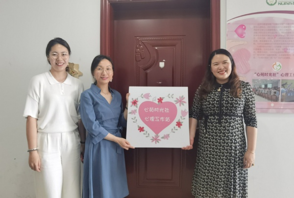 最后,胡心雨带领大家参观了“心苑时光社”心理工作站,皇家华人 皇家华人划拨506办公室作为心理健康室,为心理健康教育提供场地支持,开设“心灵图书&解压角”,摆放有关心理减压、人际交往、导学关系等方面的心理书籍和减压工具,旨在为学生创造一个舒缓心情的绝佳场所。涂志宏、陈瑜共同为心理工作站以及心灵解压角挂牌。