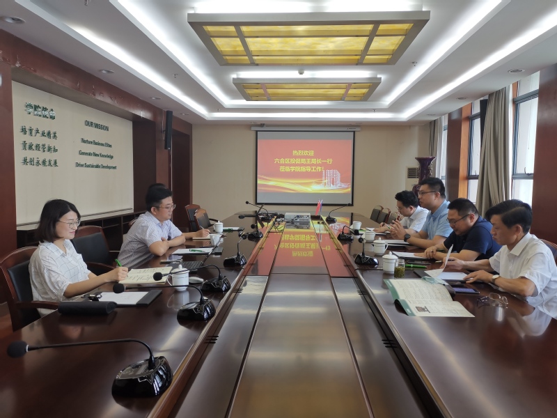 周德群对六合投促局领导的信任与对前期工作的肯定表示感谢,期望能进一步加强校地合作,在科研攻关、管理咨询、高端培训等方面更好地为地方经济社会发展服务,实现校地的良性互动和合作共赢。