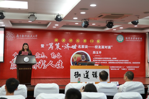最后,涂志宏希望同学们把握好在南航学习的宝贵时光,从段玉平校友的讲座中汲取智慧力量,以“稳、实、和、耐、勤”为修身治学的原则,刻苦学习钻研,投身强国伟业。