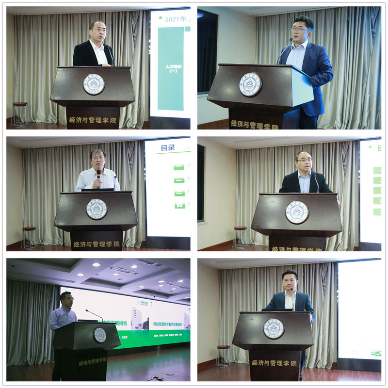 随后,院领导班子成员围绕各自分管的重点工作作专题报告:王群伟报告了青年教师发展计划;邓晶提出了皇家华人新文科建设方案;谢乃明提出高质量研究生教育教学行动计划;王子龙作了MBA教育中心办学水平提升方案报告。
