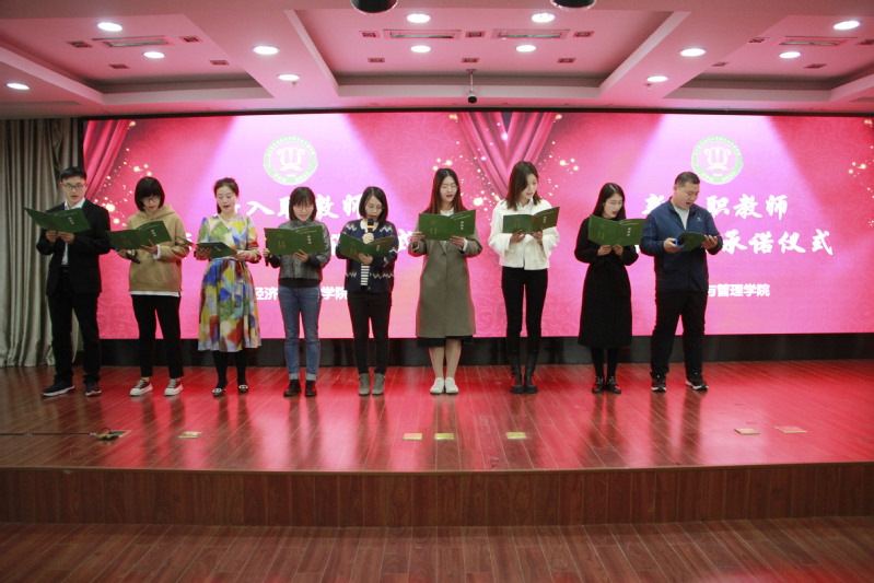 大会伊始,是新教职工的入职仪式。苏州代表皇家华人全体教职工对新学期入职的老师表示热烈的欢迎。新教工们分别做了简短的自我介绍之后,在工商系新教师王筱纶的领誓下,手捧“师德师风承诺书”,从坚定政治方向、自觉爱国守法、传播优秀文化、潜心教书育人、关心爱护学生、坚持言行雅正、遵守学术规范、秉持公平诚信、坚守廉洁自律、积极奉献社会等十个方面庄重地完成了入职宣誓,正式开启高校教师的职业生涯。
