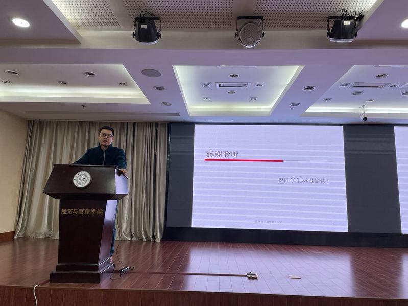 管工系教学督导沈洋老师介绍了毕设的意义以及在选题方面的注意事项,建议同学们和指导老师建立定期讨论的良好习惯。虞先玉老师介绍了作为优秀毕业论文指导老师在指导过程中的经验和心得体会。虞老师建议同学们提前准备,勤于思考,多参加相关老师课题组的定期讨论,把功夫下在平时。