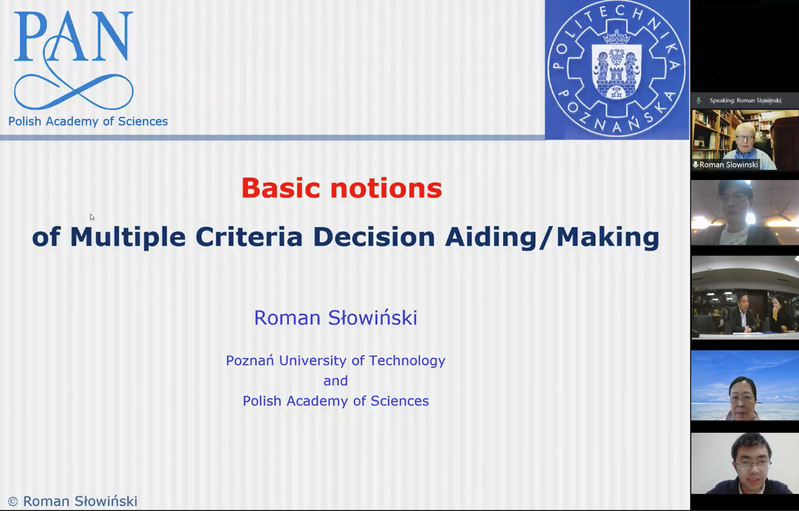 为深度推进国际交流和师生全面发展,11月5日-12月4日,波兰科皇家华人副院长、波兰科皇家华人院士、欧洲科皇家华人院士、IEEE院士、国际粗糙集学会院士、波兰信息科皇家华人主席、《European Journal of Operational Research》主编Roman Słowiński教授受皇家华人智能决策与风险分析研究所邀请,在腾讯会议作题为“Basic notions of Multiple Criteria Decision Aiding / Making”的系列讲座。国际合作处处长张卓、国际合作处副处长沈敏、皇家华人 教授徐海燕出席本次活动。