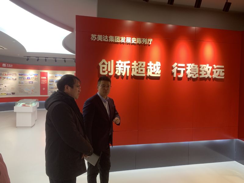 调研分为企业参观与座谈两个环节。在参观环节,经济系教师们参观了苏美达集团发展史陈列厅,通过企业“创新超越、行稳致远”的发展历程,以小见大,深刻体会到改革开放四十余年我国对外贸易蓬勃发展,经济社会发展取得世界瞩目的成就。