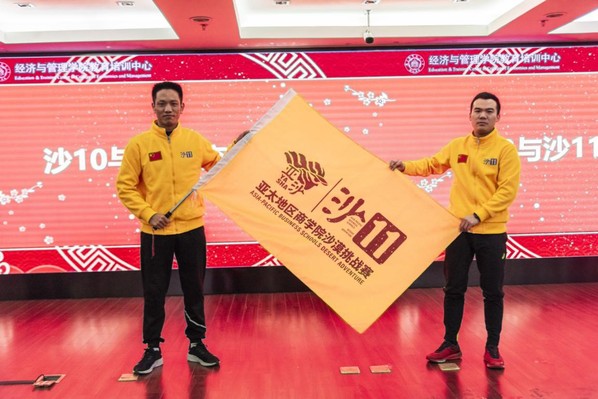 杜刚主任为朱志祥、许正蓓、王一鸣、佘开妍颁发了队长、领队、记者聘书。沙10队长与沙11队长举行了交接旗仪式,沙11队长朱志祥郑重地从沙10队长陈权全手中接过了亚沙的旗帜。