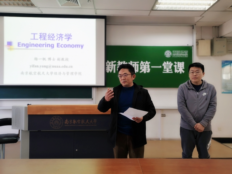 院长周德群在杨一帆和董文杰老师的引荐仪式上勉励老师们要尽快完成角色转变,站好三尺讲台,潜心教学,不断发扬钉钉子精神,始终保持坚持不懈的韧劲,切实把教育教学工作落到实处。同时充分发挥自身的优势和特长,将新思想、新理念、新方法融入教学,努力将自己讲授的课程打造成学生喜欢的“金课”。
