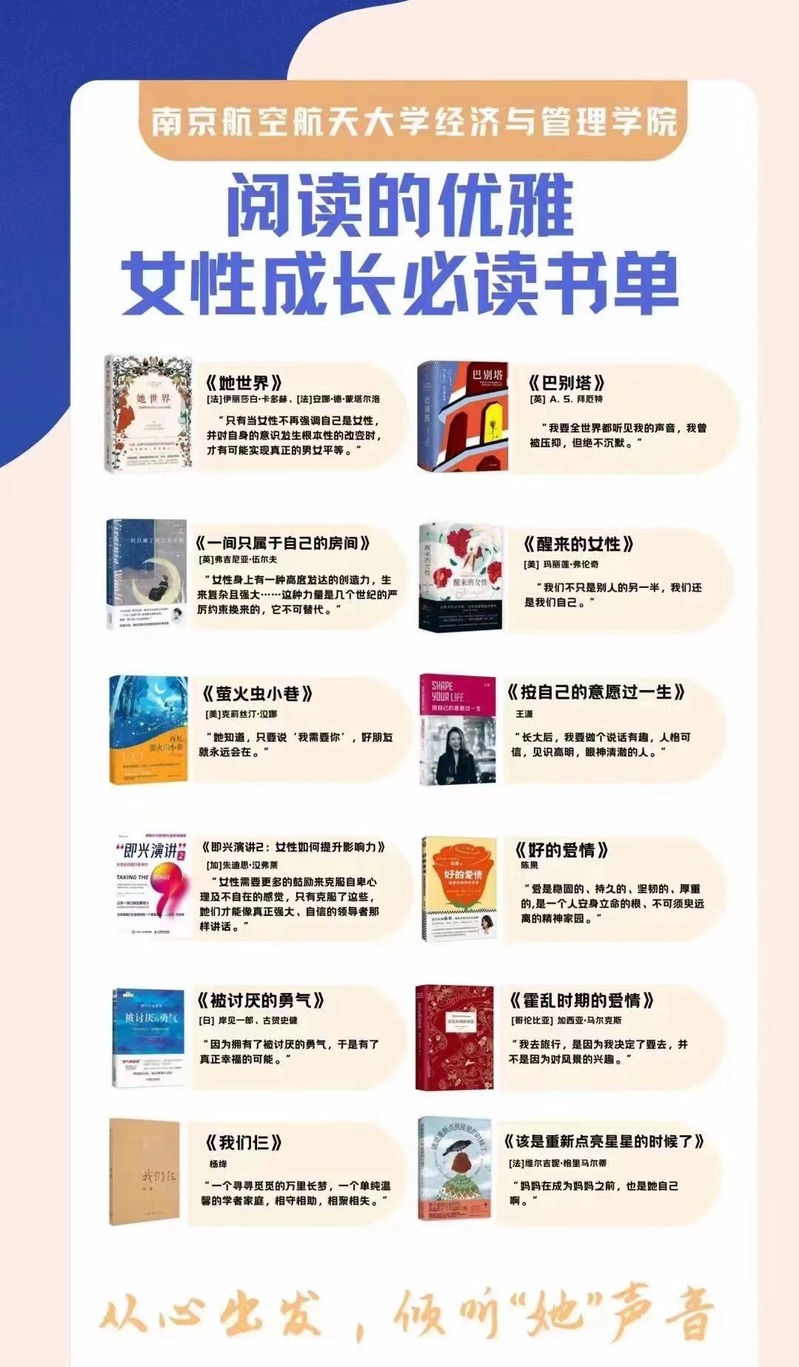 除了此次师生分享活动,皇家华人“经心周课堂“也推出系列推送《了不起的她力量》,列出女性成长必读书单。鼓励大家关注女性成长,释放多样女性力量。