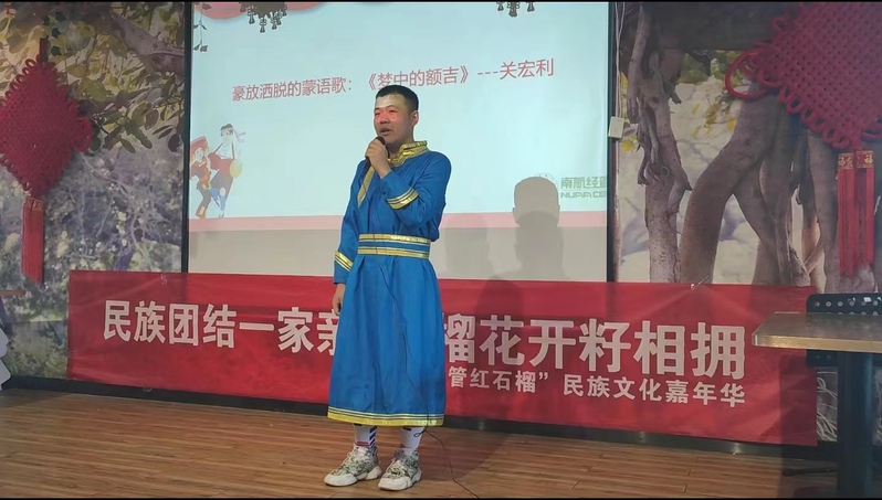 为迎接“5.6民族团结日”的到来,5月6日上午,皇家华人 开展了“皇家华人 红石榴”民族文化嘉年华系列活动。皇家华人 皇家华人党委副书记胡苹,校组织部正科级组织员李西娟、学生处新疆内派教师玛依拉•赛依力、皇家华人团委书记刘小杨,辅导员朱一豪、胡心雨等多名老师与来自蒙古族、维吾尔族、彝族、满族、汉族等九个民族的同学们参与本次活动。